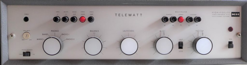 Nicht nur den TD 124, auch den VS-71 hat Peter Feldmann für meine Sammlung an Vintage HiFi fachmännisch revidiert. Ihm gelang es sogar, den abgebrochenen Acryl-Steller am kanalweise getrennten Höhenregler, für den es keinen Ersatz mehr gibt, unsichtbar und haltbar zu reparieren. Das Malheur war meine Schuld, denn ich hatte leichtsinnigerweise noch in der Villa den schwergängig gewordenen Stellhebel zu bewegen versucht. Seitdem weiß ich, dass Kunststoff altern kann …