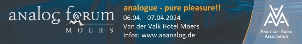 Am 6. und 7. April 2024 veranstaltet die Analogue Audio Association das – inzwischen 35. – Analogforum unter dem Motto analogue – pure pleasure!!.