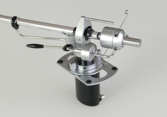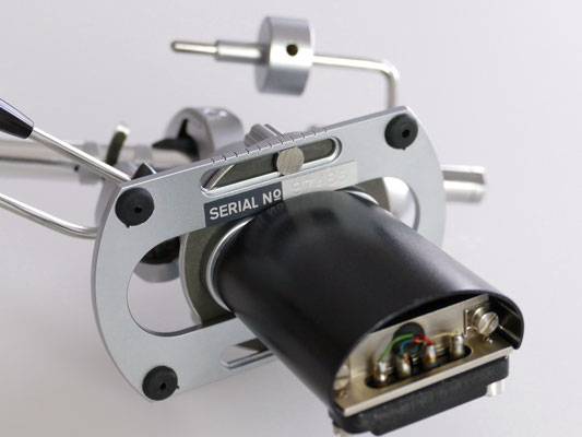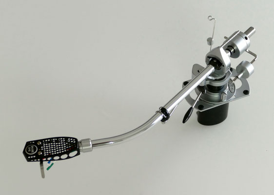 Der Tonarm wurde komplett zerlegt, sämtliche Teile wurden gereinigt, die Entkopplungsgummis des Gegengewichts ersetzt, sämtliche Kontakte gereinigt, das Silikonöl des Liftmechanismus neu befüllt und das Lagerspiel der beiden Vertikal-Lager neu justiert. Ebenfalls wurden die 4 Entkopplungsgummis der Bodenplatte ersetzt.