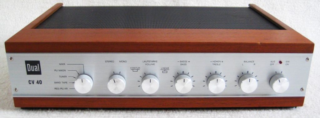 Mein Traum-Plattenspieler war der überaus erfolgreiche Dual 1019 mit seinem 3,2 Kilogramm schweren Teller, den der Schwarzwälder Hersteller vor allem in den USA wie geschnitten Brot verkaufte. Doch leider, leider reichten meine Finanzen nur für das nächst kleinere Modell, den Dual 1015. Ein Einstiegsgerät in die HiFi-Klasse, das aber mit Antiskating, Magnettonabnehmer von Shure und dem heiß begehrten hydraulischen Armlift schon ordentlich ausgestattet war. Da natürlich alles von Dual sein musste, kam als Transistorverstärker der CV 40 und als Boxen zwei CL 40 ins Haus.