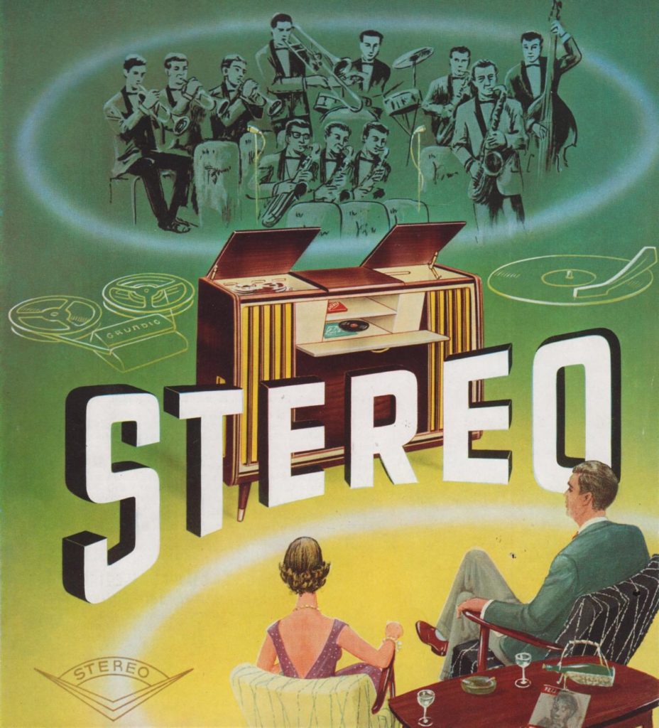 Um die vom Radiohändler empfohlenen, im Raum frei aufzustellenden „Schallstrahler“ gab‘s ein Riesentheater. Denn meine Mutter wollte die mit Brokatstoff bespannten Boxen, deren abgespreizte Beine an den Enden mit Messing beschlagen waren, partout nicht im Wohnzimmer haben. Stattdessen kamen zwei ovale Breitbandlautsprecher Marke Eigenbau, nun ja: ins Blumenfenster. Die Basisbreite betrug allenfalls 1,20 Meter. Ich war damals erst zehn Jahre alt, hatte aber schon als Schüler irgendwie das Gefühl, dass dies nur Stückwerk sein konnte. Stereoklang nicht vernehmbar – so oft ich auch die entsprechende Taste am Steuergerät niederdrückte.