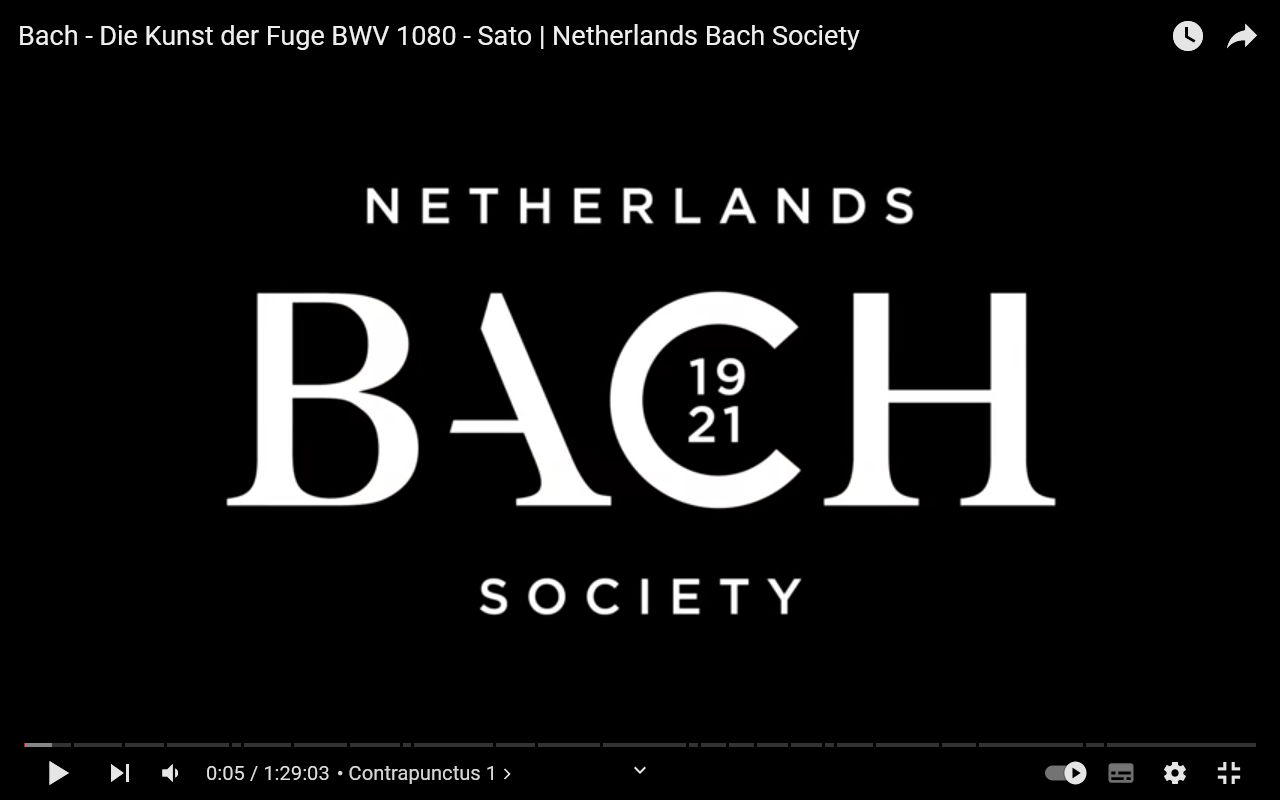 Die Kunst der Fuge BWV 1080 – Hier in einer ganz besonderen Interpretation. Ein Meisterwerk in einer Art, wie man es selten hört: Sato | Netherlands Bach Society. Absolut phantastisch!