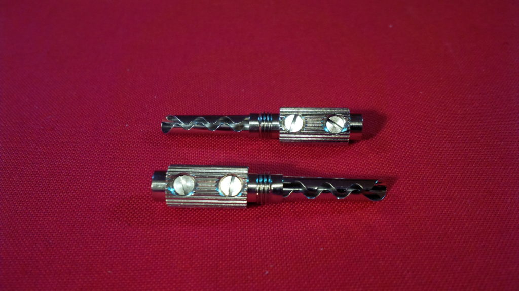 Ich habe die Stecker an verschiedenen Kabeln (Silber- und Kupferleiter) getestet und in Röhren- und Transistorketten mit wirkungsgradstarken und eher „leiseren“ Lautsprechern gehört. Das Ergebnis ist, dass die Stecker in jeder Konstellation das jeweilige klangliche Ideal der Ketten und der verwendeten LS-Kabel ausnahmslos so weitergegeben haben, wie es auch ohne die Stecker (also direkt angeklemmt) war.