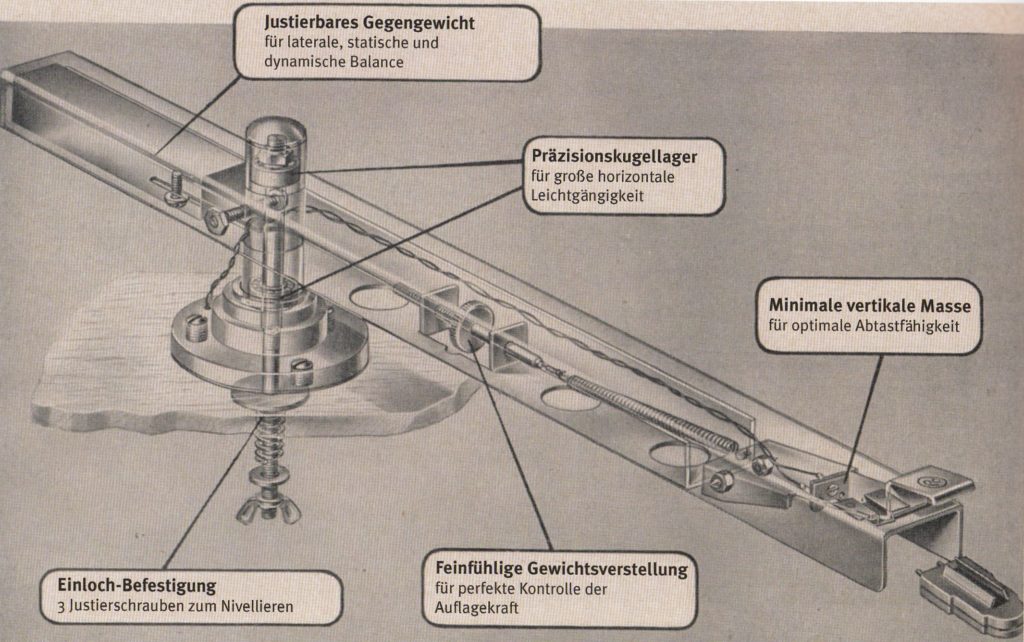 Konstruktion des Vorläufers Pickering 190 mit langem Gegengewicht – Abbildung aus meinem Werk SCHWEIZER PRÄZISION