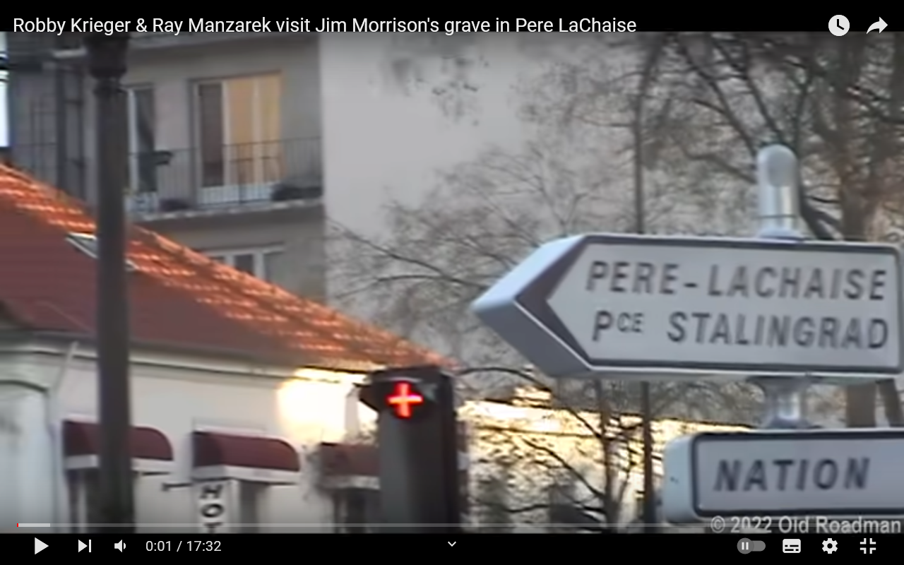 Hier ein interessantes Video. Ray und Robby besuchen das Grab von Jim Morrison in Paris…Es ist noch heute ein besonderer Ort auf dem Pere-LaChaise…