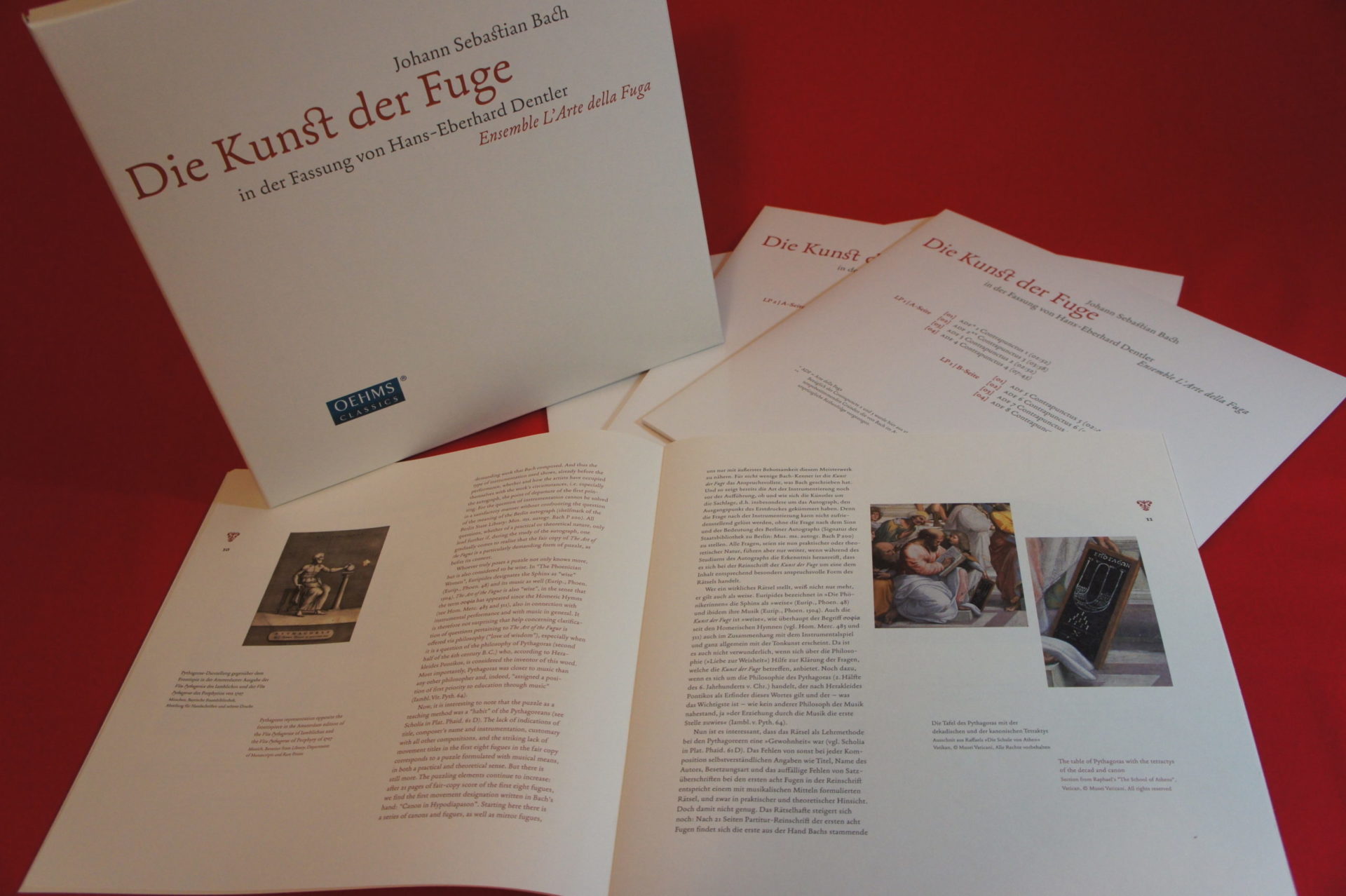 Seine Erkenntnisse setze Dentler nun mit dem Ensemble L´Arte della Fuga (in der Besetzung für Violine, Viola, Violoncello, Kontrabass und Fagott) auch musikalisch um. Die Aufnahme ist als Doppel CD und als auf 1000 Stuck limitierte LP Box mit drei perfekt hergestellten LP erschienen. In der wundervoll gestalteten Box findet sich zudem ein ebenfalls perfekt hergestelltes 30-seitiges Beiheft mit weiteren Informationen.