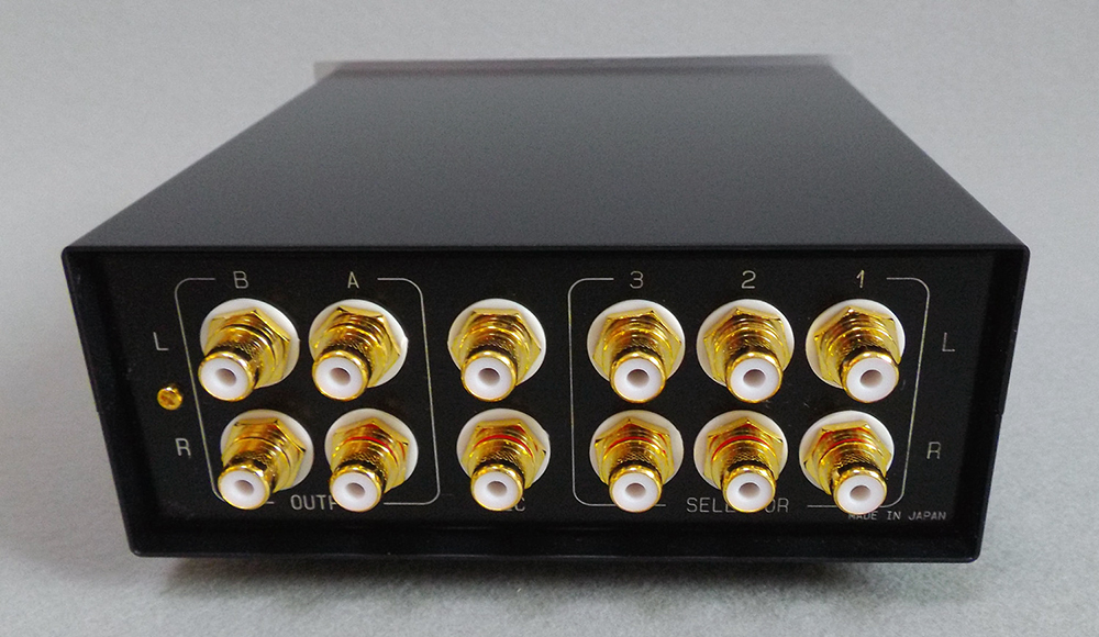 Der Miyajima PS-01 ist ein einfach zu bedienender passiver Eingangs- und Ausgangs-Wahlschalter mit Lautstärkeregelung. Er besitzt drei Eingänge und 2 Ausgänge, die einzeln oder gemeinsam aktiv sind und zwei REC-Ausgänge mit festen Pegel. Der Lautstärkeregler besteht aus einem hochwertigen Alps Potentiometer.