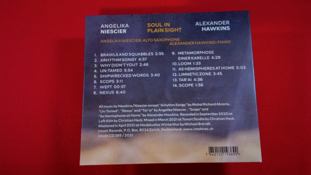 Das neue Album von Angelika Niescier und Alexander Hawkins ist erschienen. Die Duo-CD der Saxofonistin und des Pianisten stellt das Ergebnis einer längeren Konzert-Zusammenarbeit der beiden Künstler:innen dar. Ende September 2020 gingen die beiden schließlich ins „Loft Köln“ um ein gemeinsames Studio-Album zu produzieren. Mit „Soul in Plain Sight“ zeigen sie nun, warum sie zu recht zur Spitze der weltweiten Jazzavantgarde gehören.