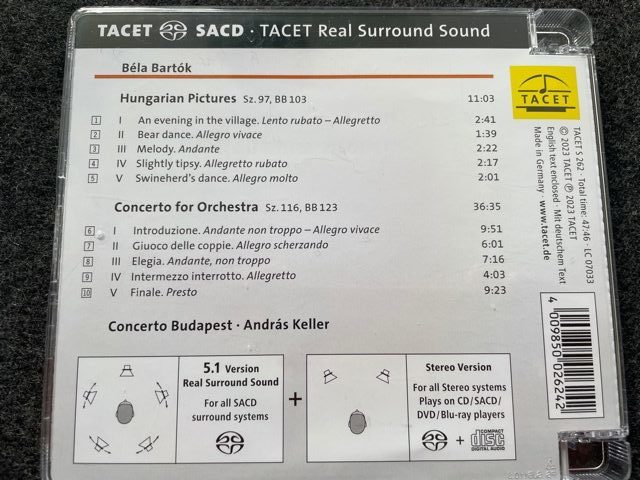Das Concerto Budapest unter der Leitung von András Keller und aufgezeichnet von Andreas Spreer und dem Label TACET, natürlich wieder im „Inspiring Tube Sound“. Gut, damit steht zunächst einmal fest, dass diese SACD (die auf jedem CD-Player abgespielt aber zusätzlich noch eine weitere Spur im TACET Real Surround Sound besitzt) klanglich absolute Spitzenklasse ist, denn schlechtklingende Produktionen verlassen das Haus TACET nicht. Ich kenne jedenfalls keine einzige, die nicht klanglich herausragend wäre. Zu dem Orchester und András Keller muss man auch nichts mehr schreiben, beide sind weltweit bekannt und über Keller hatte ich bei anderen Besprechungen schon mehrfach geschrieben, siehe unten mit weiteren Hörbeispielen.