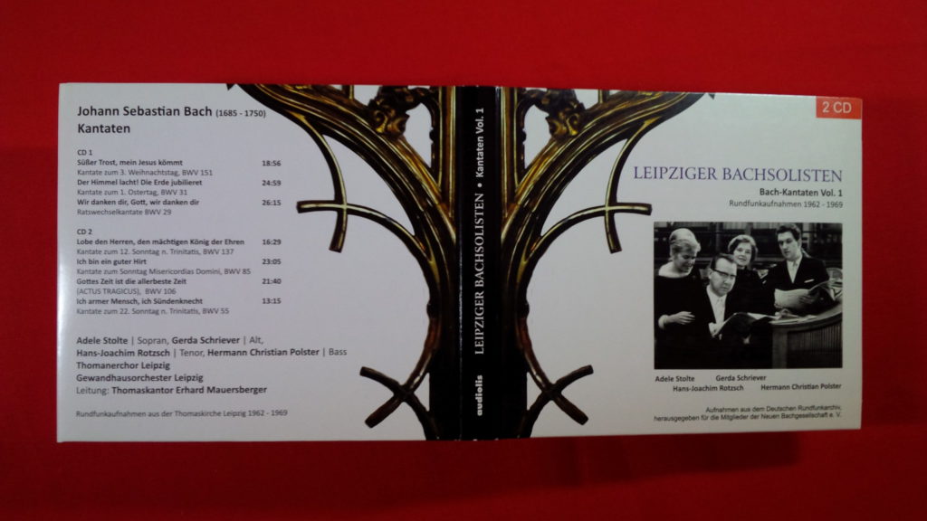 Die CD der Leipziger Bachsolisten mit dem Titel „Bach-Kantanten Vol. 1“, gibt den Zuhörer*innen einen spannenden Einblick verschiedener Rundfunkaufnahmen des Deutschen Rundfunkarchivs aus den Jahren 1962-1969, aufgenommen in der Thomaskirche in Leipzig. Bei allen Aufnahmen wird der von den Leipziger Bachsolisten selbst gewählte Schwerpunkt auf die Interpretationen der Solopartien der Vokalwerke von Johann Sebastian Bach deutlich hörbar.