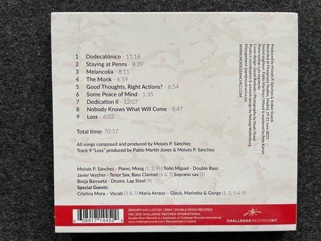 Ein persönliches Album mit dem der Musiker, gemeinsam mit der Band (besonders hervorzuheben möchte ich die Special Guests: Cristina Mora(voc) und Maria Arranz (Glock, marimba, gongs) seine Lebenserfahrungen musikalisch verarbeitet. Jazz mit großen Anleihen an die besten Fusion-Bands (Chick Corea!), geprägt von treibenden Rhythmen und schnellen und spannenden Changes und mit „harten“ Ausblicken in den Jazz-Rock!