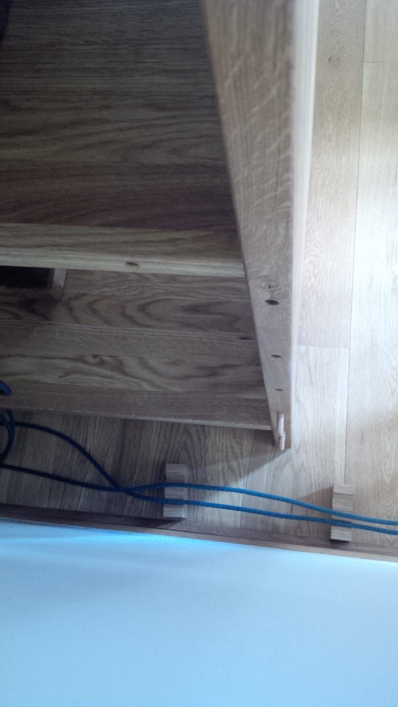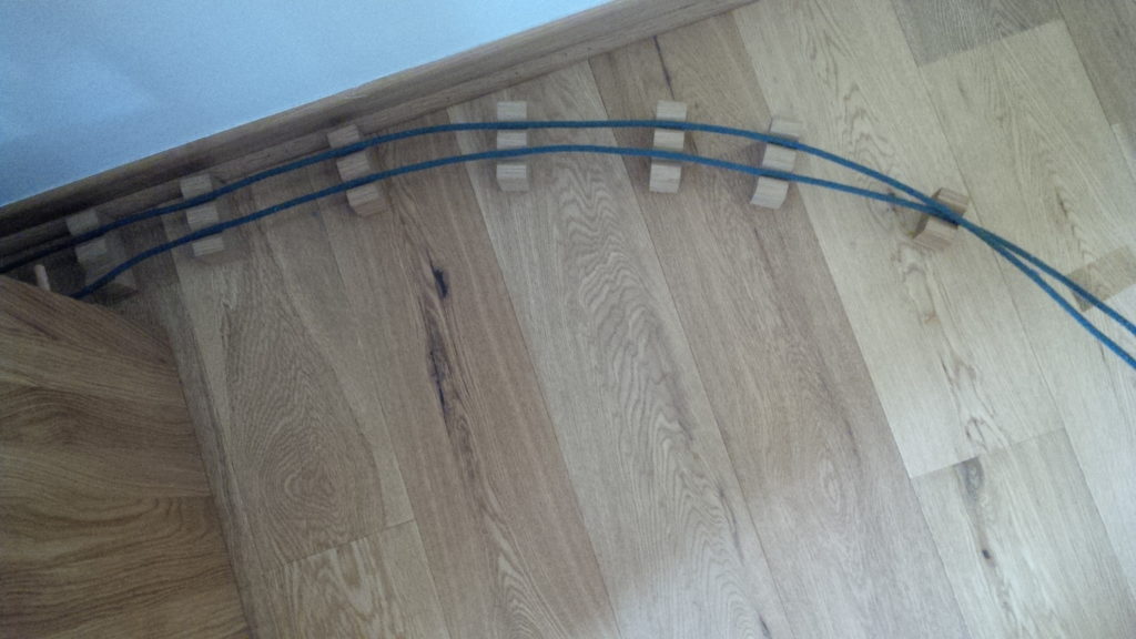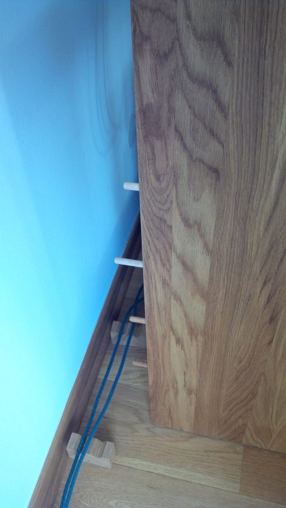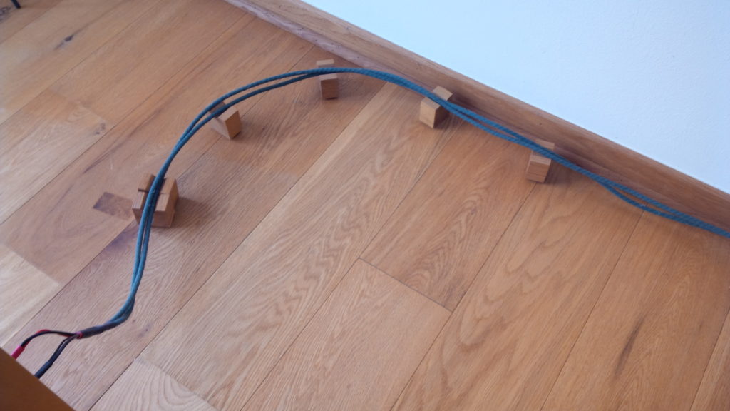 Bei den Lautsprecherkabeln ist das Wichtigste das Entkoppeln vom Boden. Nicht nur, dass die Kabel ruhiger liegen, werden sie – und das, so ehrlich will ich sein war mein primärer Grund – ja, werden sie beim Wischen nicht nass oder z.B. durch den Staubsauger attackiert. Und allein das macht einen großen Unterschied aus…