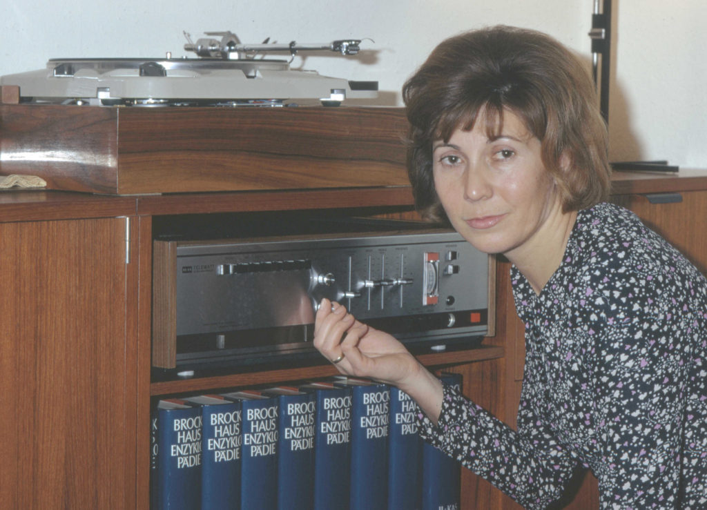 Gudrun Baur am Transistor-Vollverstärker Klein + Hummel ES 707