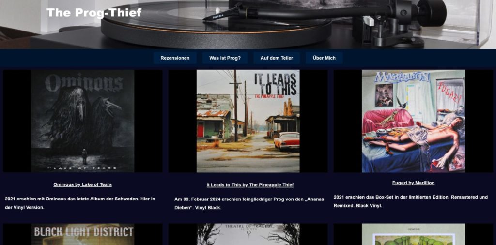 The Prog Thief von einem guten Freund, großem Prog-Liebhaber und LP Fan: Jan Specht! Unbedingt reinschauen! Und Jan ist ein wirklich ganz besonderer Mensch, der sich nicht unterkriegen lässt. Und wer mal genauer nachliest, kann sich vorstellen, wie viel Arbeit hinter seinem Projekt steckt!