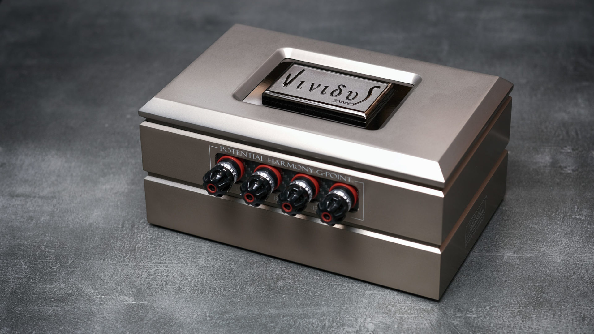 Anders ist jetzt unsere Vividus zwo, deren Herangehensweise so noch nicht existent ist und daher eine Weltneuheit darstellt. Vividus zwo bietet den angeschlossenen Geräten ein erweitertes Angebot geringster Widerstände zur Verfügung. Diesen Weg nehmen die  Potentialströme der Geräte oder unserer Gerätebasen (Composant S) gerne an. Im Inneren der Vividus zwo werden die hochfrequenten Störungen der durchlaufenden Ströme resonanztechnisch so eingestellt, dass nur die musikalisch harmonischen Obertonfrequenzen vorhanden bleiben. Wir regeln „einfach“ die HF-Störungen heraus und erhalten einen perfekt sauberen und harmonischen Potentialstrom, der nun ohne negative Einflüsse auf das Signal die Signalmasse passieren kann. Das Signal bleibt pur und musikalisch rein.