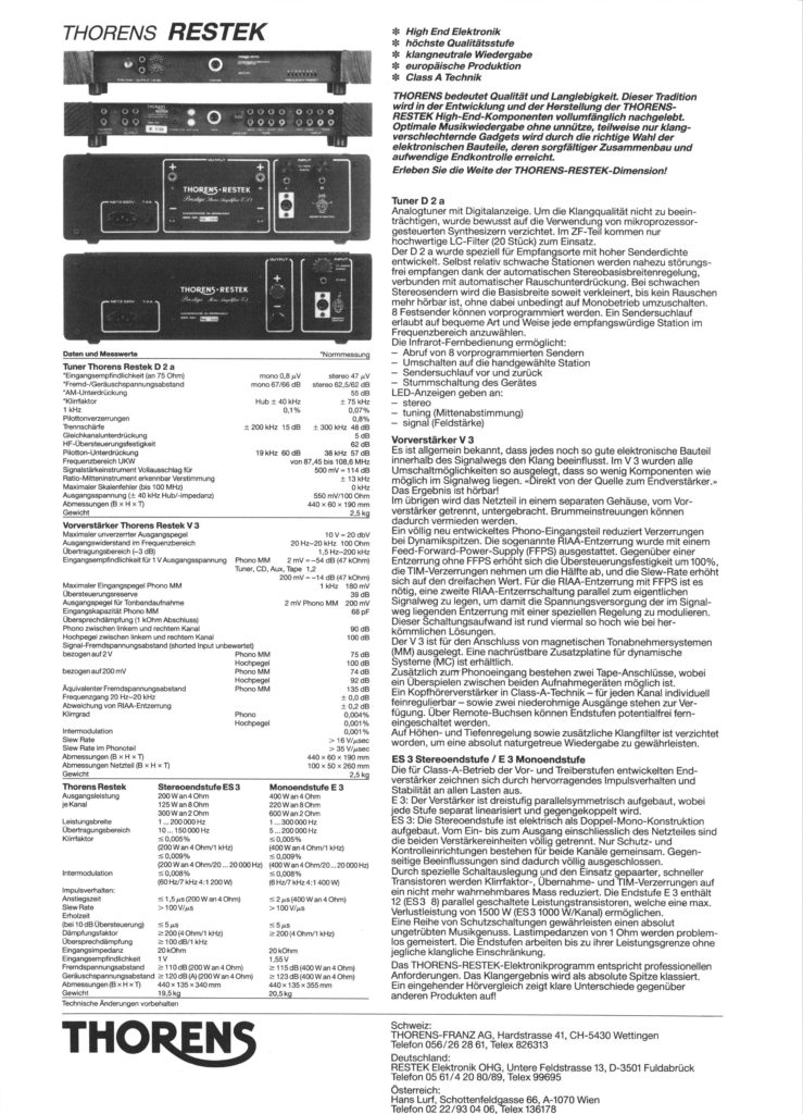 Übrigens: Aus der Serie gibt es weitere Geräte, die alle ebenfalls noch heute klanglich nicht zum alten Eisen gehören, aber sehr günstig angeboten werden und selbstverständlich ebenfalls von RESTEK weiter repariert werden können. Und natürlich kann man diese ebenfalls jederzeit in den Service geben und Updates durchführen lassen, denn beides wird weiterhin angeboten.
