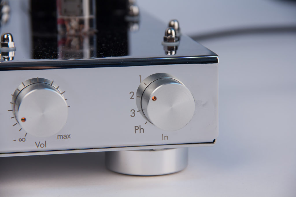 So besitzt dieser Vorverstärker neben seinen 3 Line Eingängen einen auf das Tonabnehmersystem kapazitiv anpassbaren MM-Phonoeingang. Eine sauber und kräftig agierende OTL Röhrenendstufe in SRPP Schaltung für den Kopfhörer ist ebenfalls an Bord.