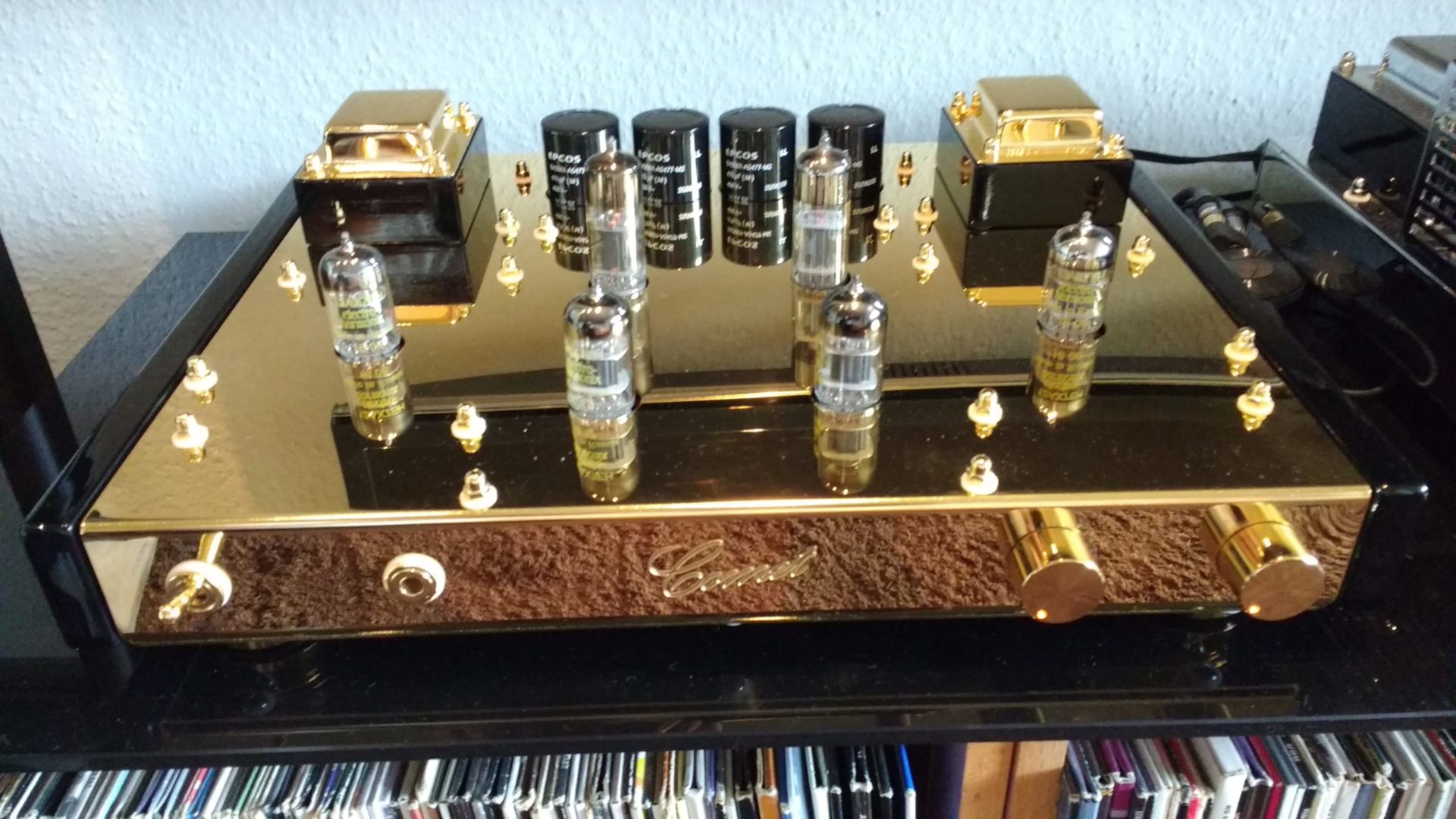– Kopfhörerausgang eisenlos mit 6N6P in SRPP, voreingestellt für niederohmige Kopfhörer, intern schaltungstechnisch umrüstbar.