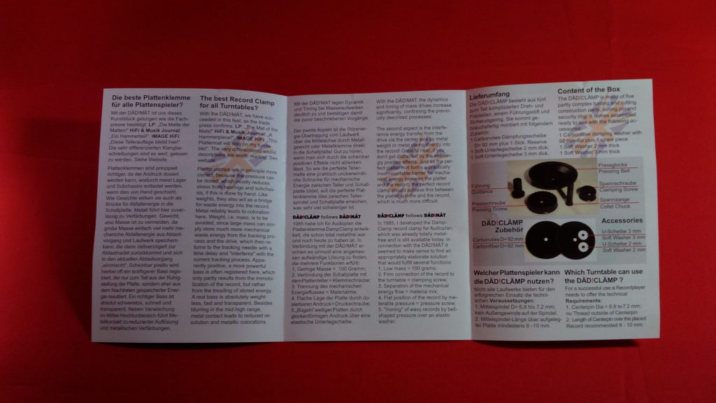 Ich hatte ja schon in meinem ersten Videobericht im Rahmen der Vorstellung der neuen Plattentellerauflage DÄD!MÄT aus der kleinen deutschen Ideenschmiede, dem Vertrieb und der Manufaktur Black Forest Audio angedeutet, dass nun nur noch die dazu passende Klemme fehlen würde. Natürlich wusste ich zu diesem Zeitpunkt schon, dass diese kommen wird. Nur nicht wann. Jetzt ist sie endlich da und auch nach weit über 10 Jahren Testautorentätigkeit, war dies wieder einmal ein Produkt, dessen Eintreffen ich kaum erwarten konnte.
