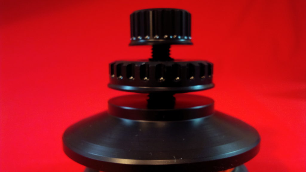 Über die Vorteile, die eine außerhalb der gewollten Drehbewegung nicht zusätzlich und unkontrolliert „bewegte“ Platte bei der Auslesung durch den Tonabnehmer hat, hatte ich in meinem ersten Videobeitrag bereits ausführlich gesprochen und ich denke, das ist für jeden nachvollziehbar. Ich hatte zudem schon mehrfach auf den meiner Meinung nach konzeptionellen Vorteil einer leichteren Klemme gegenüber einem schweren Plattenpuck/-gewicht hingewiesen. Wie in vielen Bereichen unseres wunderbaren Hobbys, stehen sich aber hier die Lager kämpferisch und jeweils siegessicher mit ihren jeweiligen Ansichten gegenüber. Für mich persönlich überwiegen die Vorteile der leichteren Klemmen. Aber auch hier gilt: Jeder so, wie er mag und wie es für ihn besser klingt. Nur bitte immer aufpassen, dass Ihr Laufwerk von seiner Konstruktion her überhaupt ein schweres Gewicht auf seiner Achse aushält.